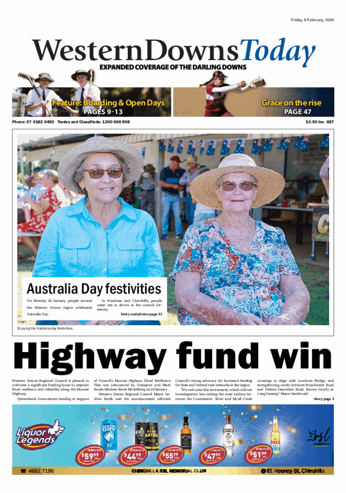 Western Downs Today – 6th February 2026 Subscribe or Login to see the rest of the content. Username Password * Remember Me Forgot Password News Western Downs CEO announces departure 18/02/2026 Western Downs Regional Council will need to recruit a new CEO later in 2026 after CEO Jodie Taylor announced on Friday Feburuay 13, that... Sporting through the years 18/02/2026 Some sporting clubs in the Western Downs have been around for more than a century. Dalby Bowls Club was officially opened by Thomas Jack... New Corporate Plan guides Western Downs future 18/02/2026 Western Downs Regional Council has officially adopted its new Corporate Plan 2026-2031 at the January Ordinary Meeting of Council, marking a significant milestone in...